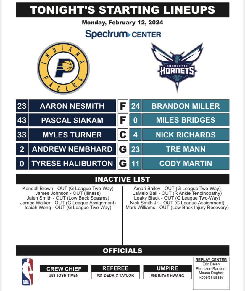 Source : www.facebook.comCharlotte Hornets PR on X: “Starters for tonight’s game vs